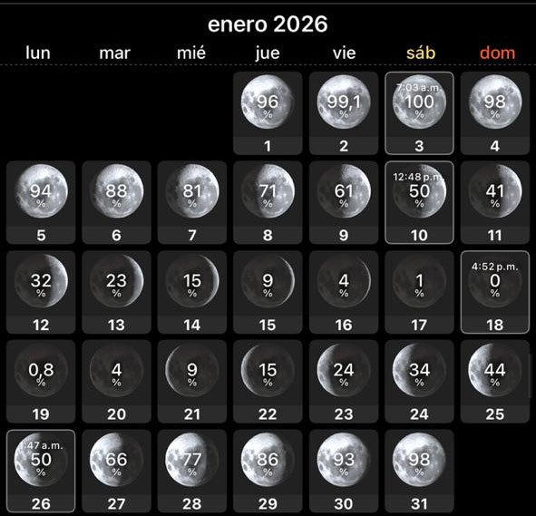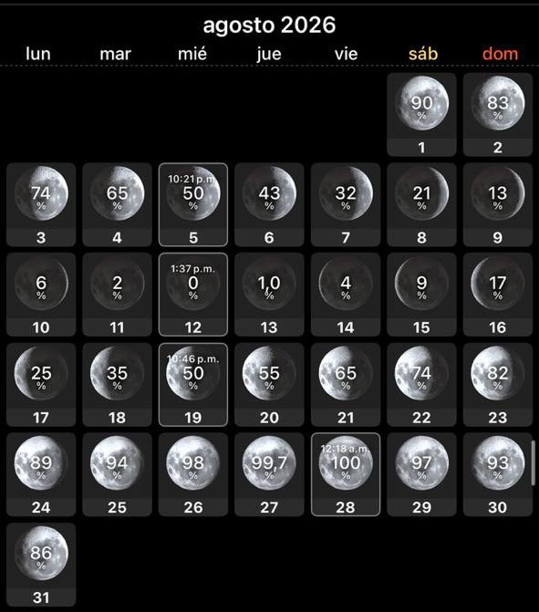 Los horarios pueden cambiar, ya que dependemos de la hora exacta de salida de la luna.